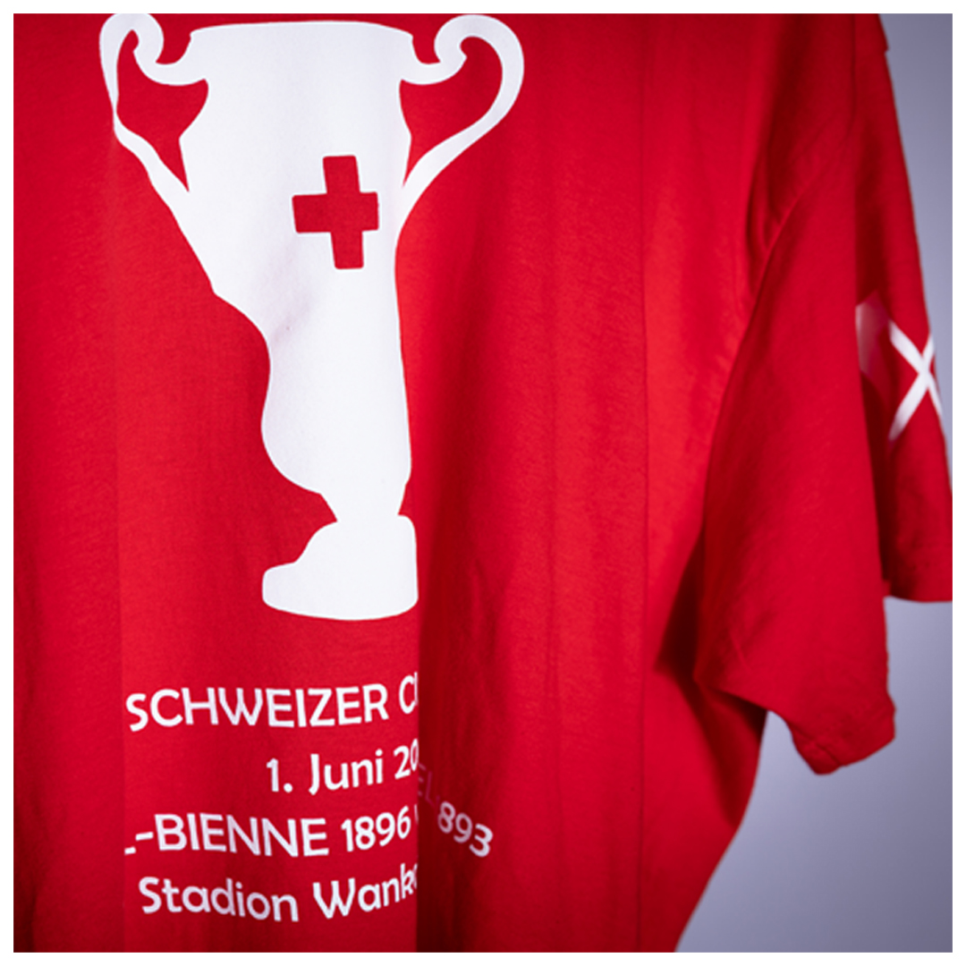 Avant le match et le jour même de la Coupe de Suisse, notre t-shirt spécial « Finale de la Coupe » au prix de CHF 25.00 et l'écharpe au prix de CHF 20.00 seront disponibles aux points de vente suivants (dans la limite des stocks disponibles):